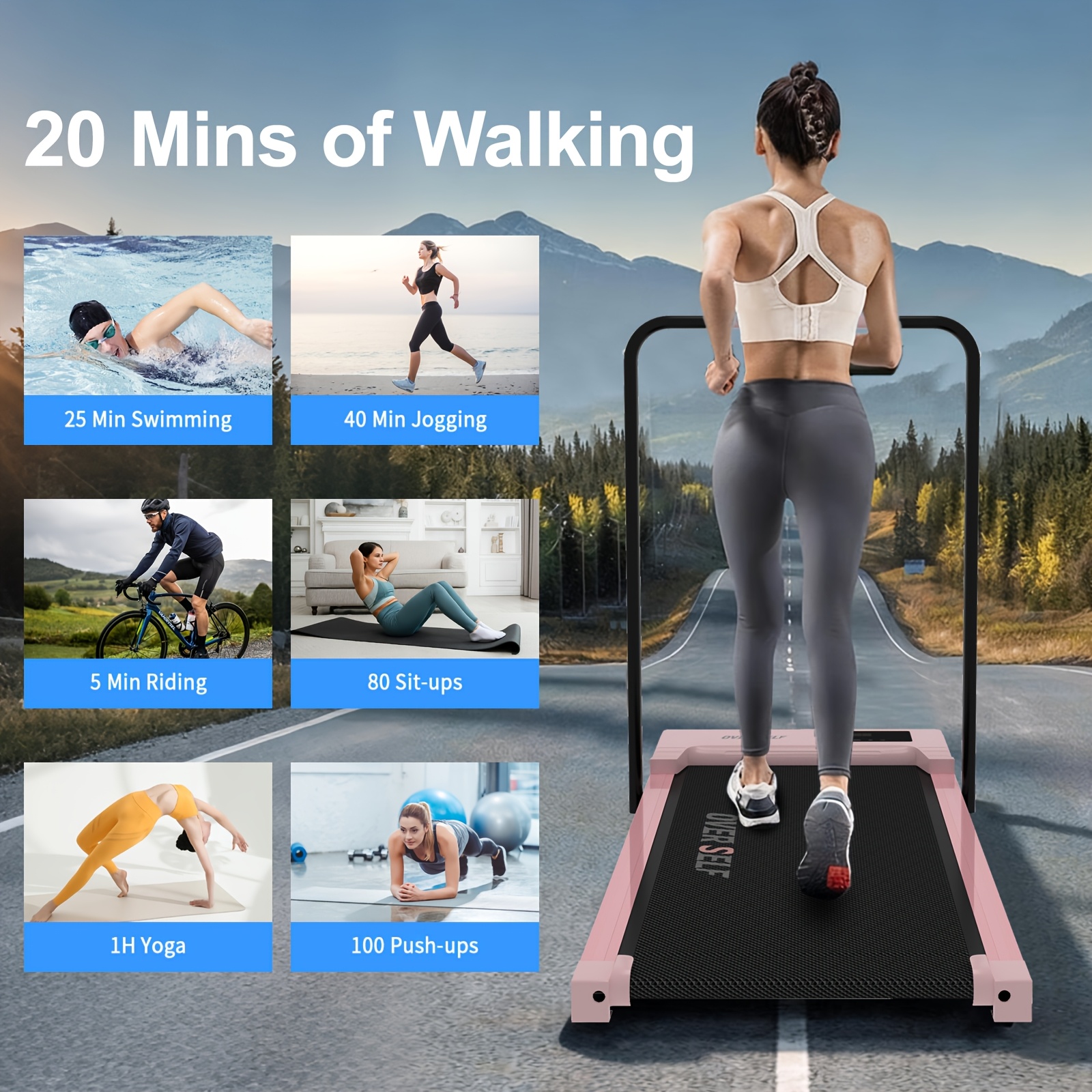 OVER SELF Esteiras Elétricas para Casa com Inclinação, Esteira de Caminhada com Barra de Apoio, Esteiras Portáteis Pequenas de 0,6-6,2MPH com Alças para Espaços Pequenos em Casa, Esteira de Caminhada de 2,5HP com Inclinação e 350LBSAlimentado por um motor de 2,5HP, esta esteira doméstica pequena atinge 0,6–6,2MPH e suporta uma capacidade de 350 lb. Esta esteira portátil com alças oferece treinamento inclinado, além de versatilidade como esteira sob a mesa e esteira de caminhada com barra de apoio