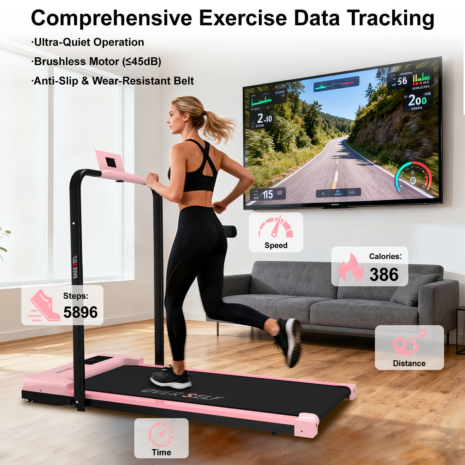 OVER SELF Esteira Dobrável Portátil com Barra de Apoio e Inclinação Ajustável, 2.5HP, Esteira Elétrica para Casa Pequena, Esteira com Inclinação, 0.6-6.2MPH, 350LBS