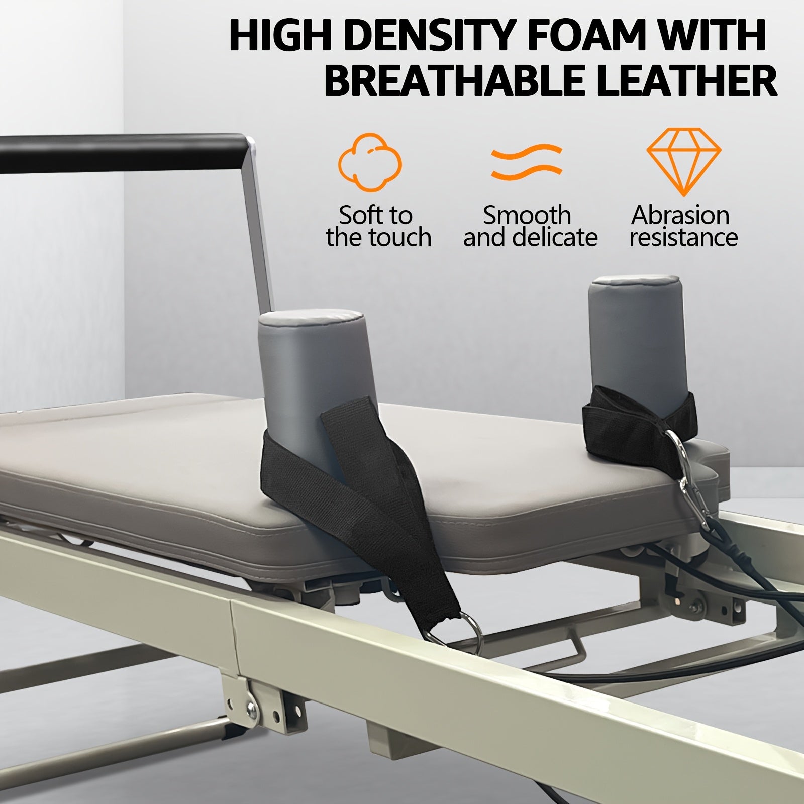 Unlike basic resistance bands or yoga equipment, this reformer provides controlled, smooth resistance that targets deep stabilizing muscles. The dual resistance system (springs + cords) gives you more exercise options and precise control over intensity - from gentle rehabilitation to intense strength training.